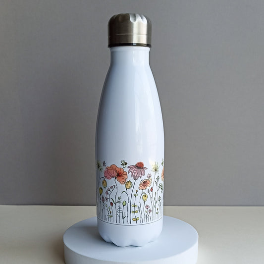 Bouteille isotherme "Fleurs des champs" blanche ou lila