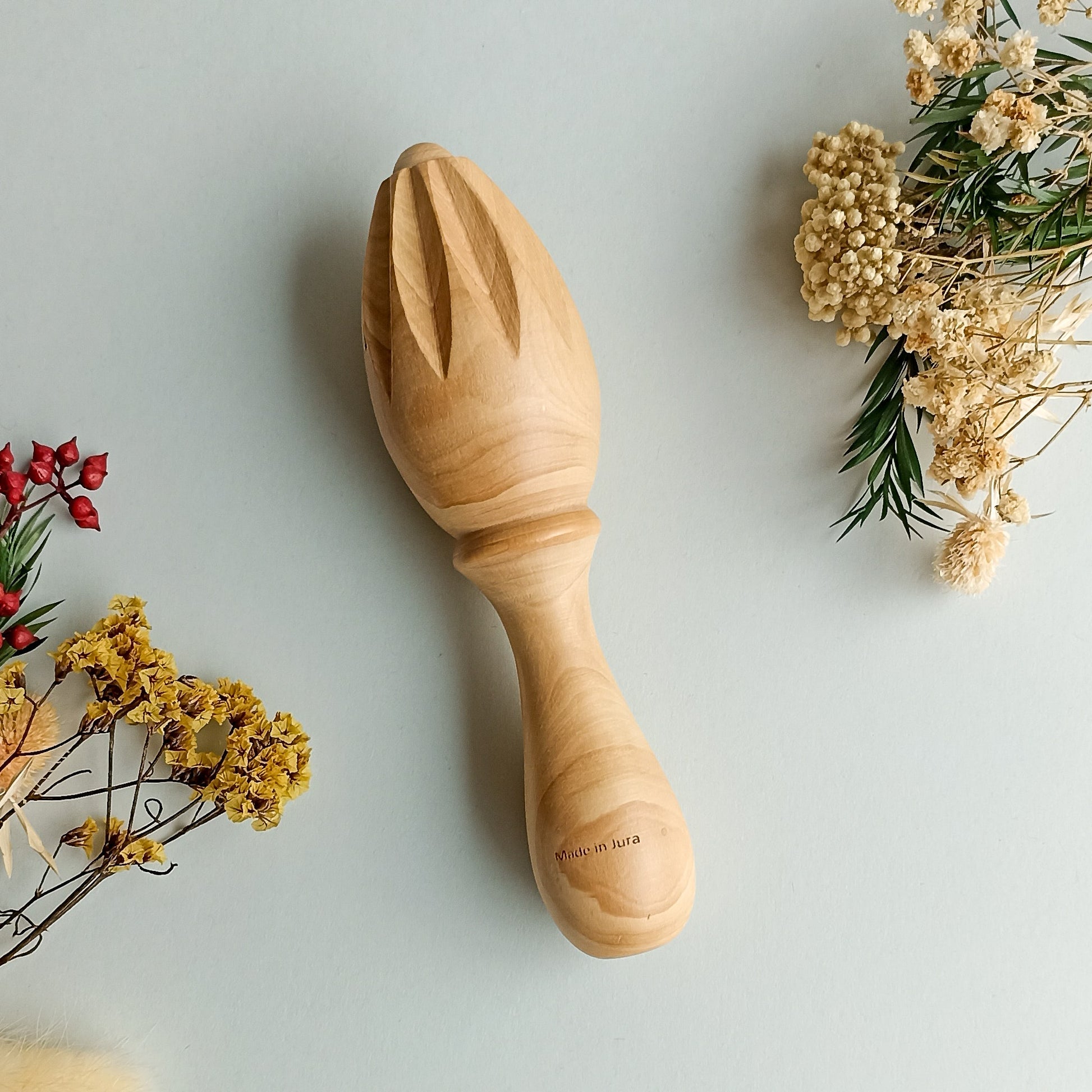 Presse-agrumes manuel, fabriqué en bois de Buis jurassien.