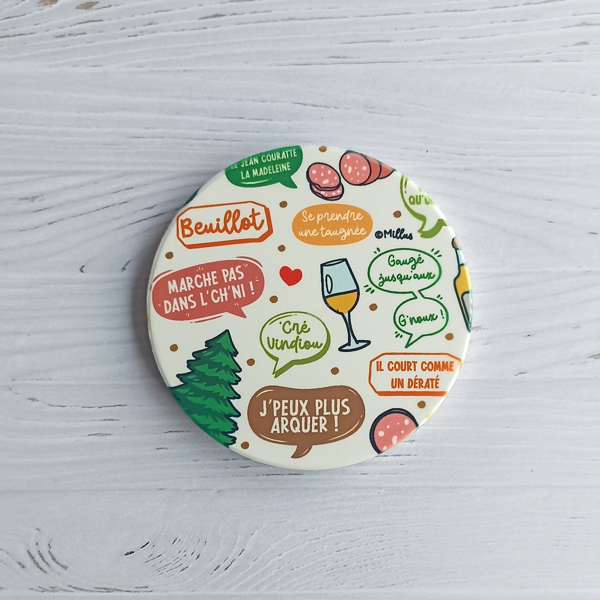 Sous-verre en céramique blanc, imprimé et illustré à l'atelier. Fini brillant, diamètre de 10 cm.
